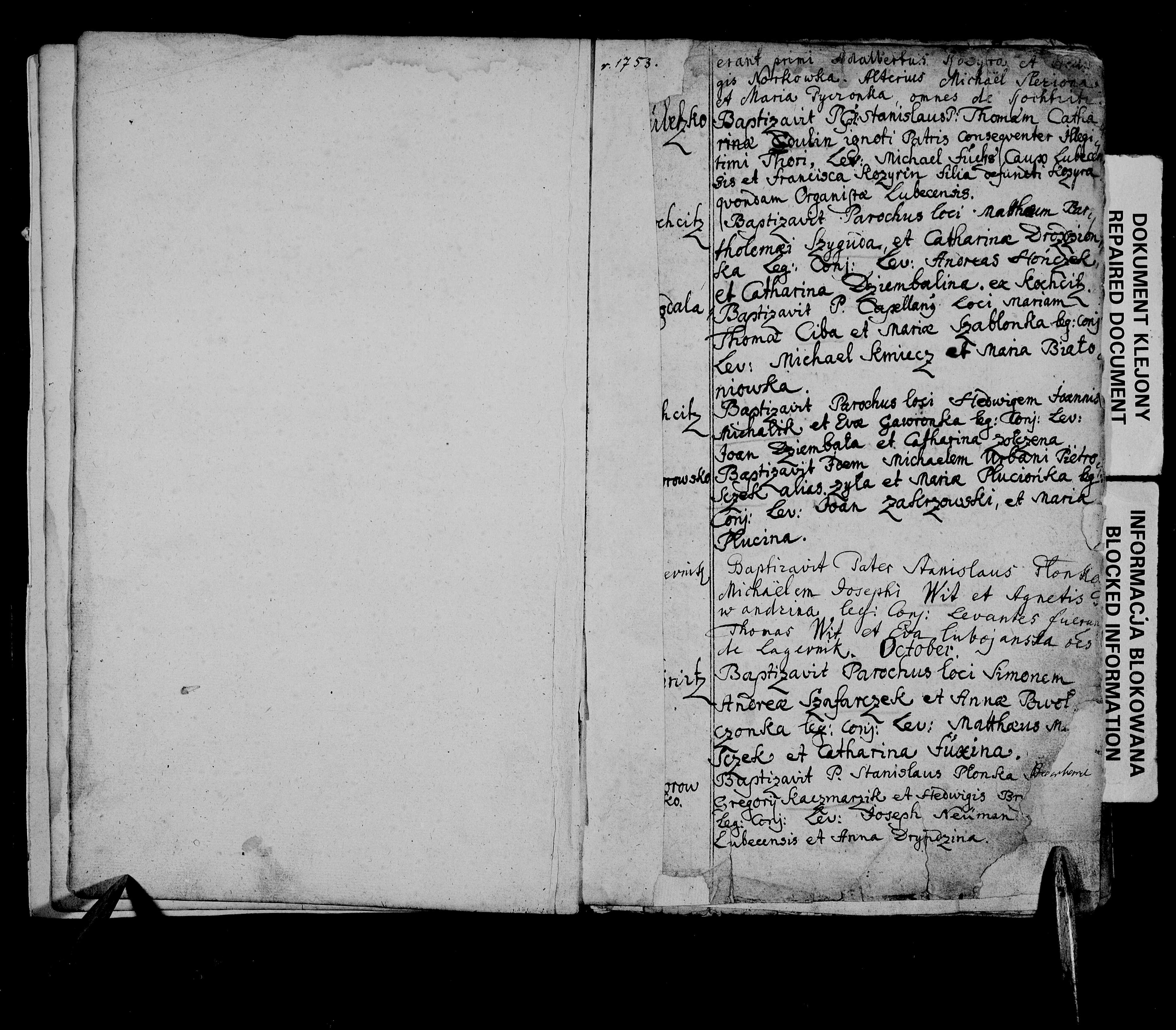Imię ochrzczonego dziecka jest "dobazgrane" na uszkodzonym/doklejonym narożniku. Jakie to jest imię Waszym zdaniem?